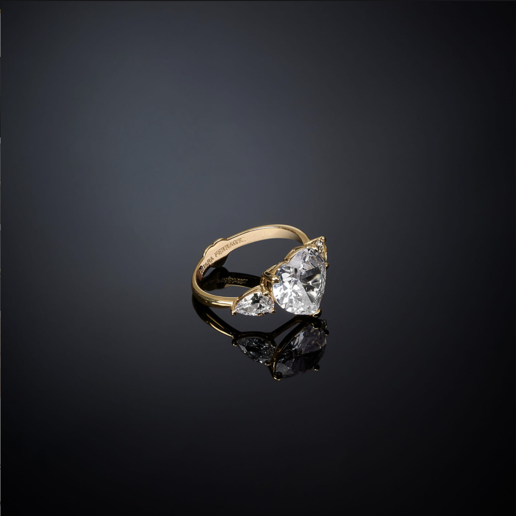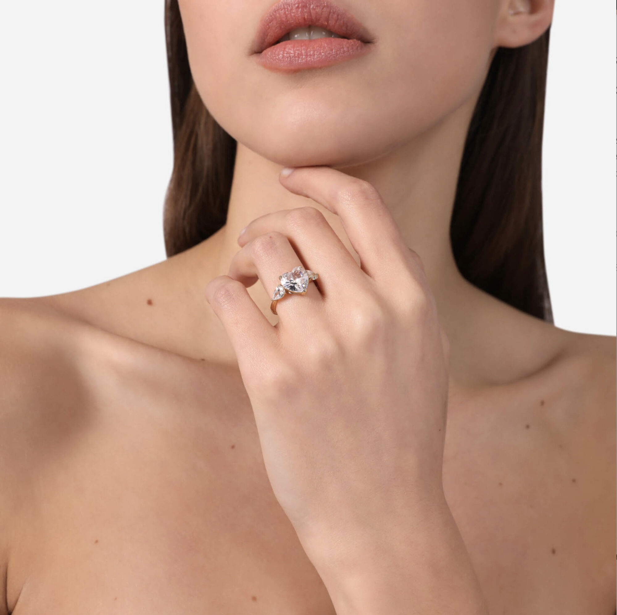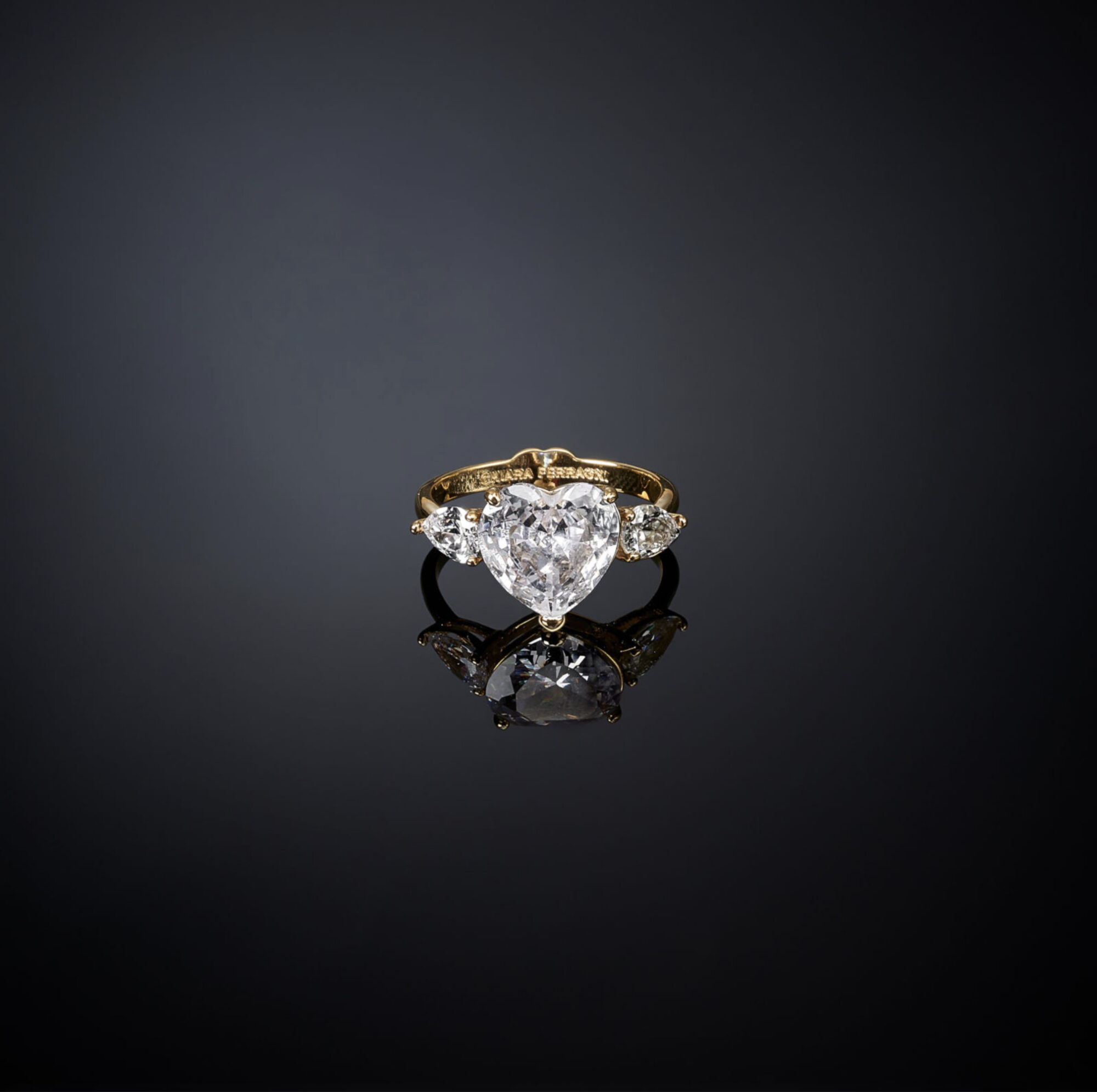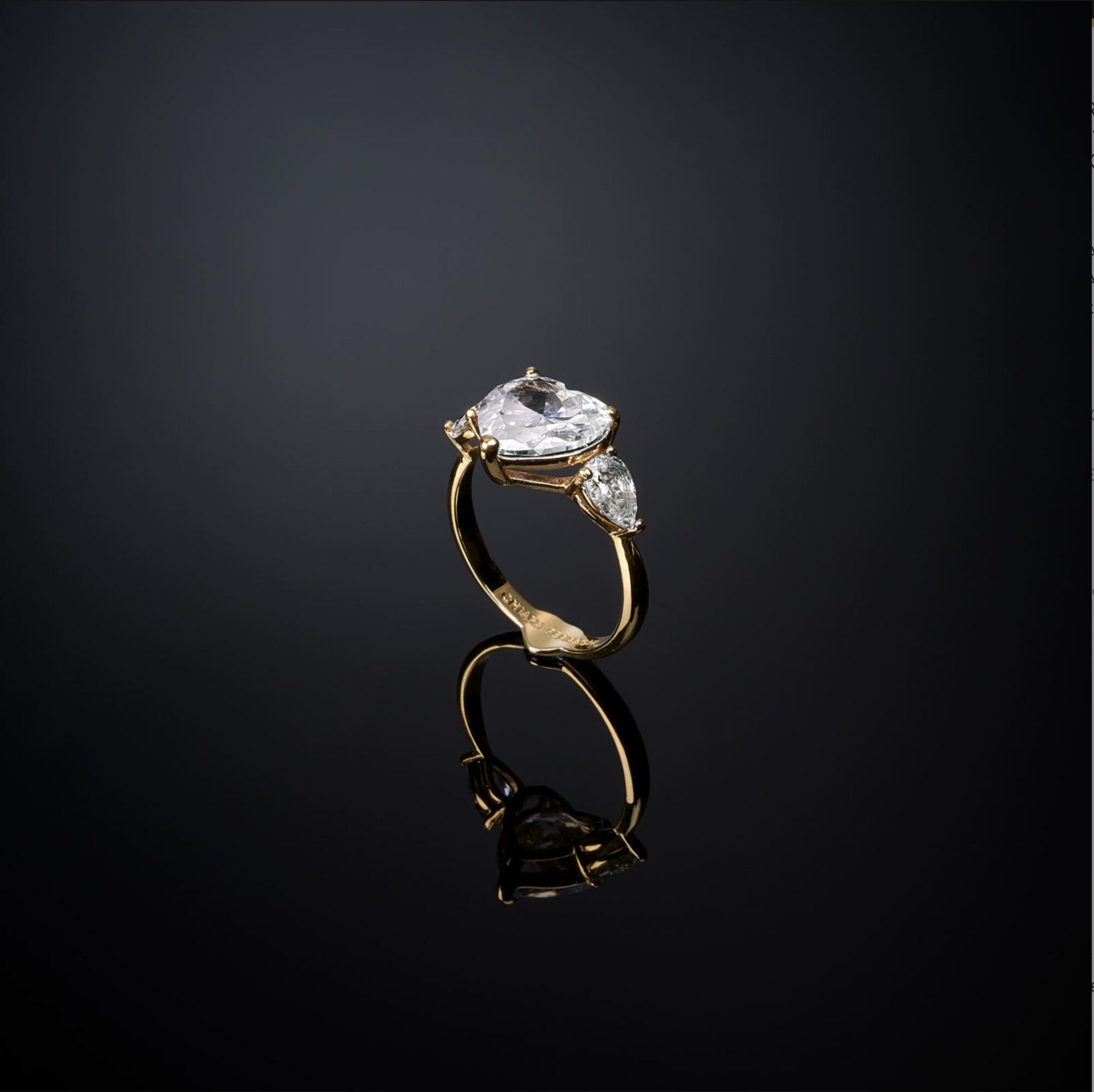 Anello con zircone bianco a forma di cuore e due zirconi a forma di goccia, placcato in oro18k